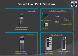 - เป็นระบบ Parking ที่รองรับทั้ง Online และ Offline มีการเขียนเวลาและทะเบียนลงบนบัตร